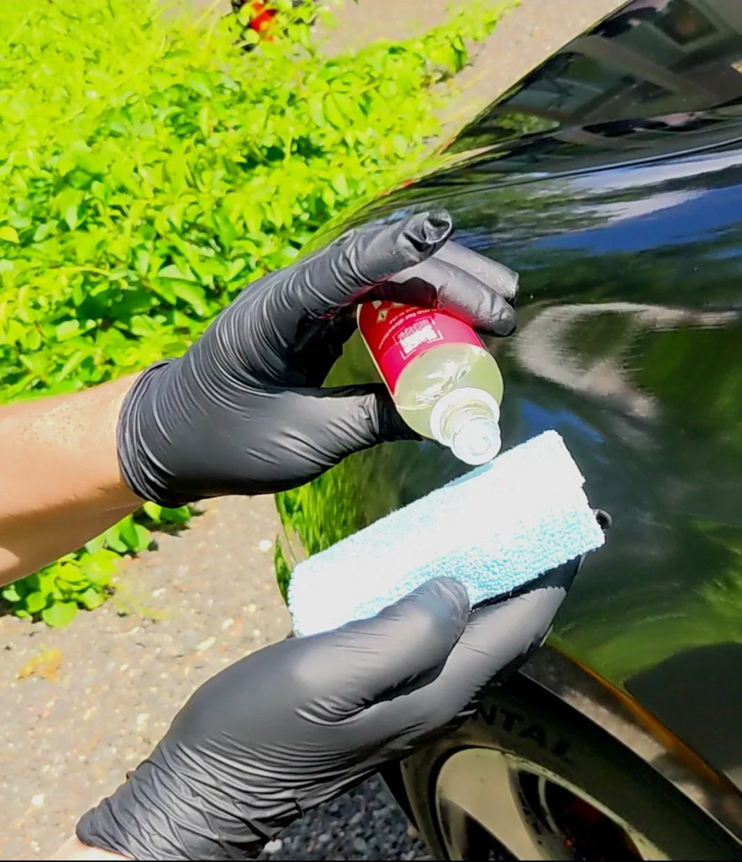 Next is the ‘iron decontamination phase.’ If you’re not from the detailing world, that phrase means nothing to you. Most people aren’t aware of the tiny contaminants that sit on your car’s paint that are not removed through the washing process. These microscopic contaminants are single handedly responsible for long term paint DAMAGE! We’ve got the chemicals to remove them!